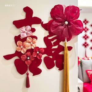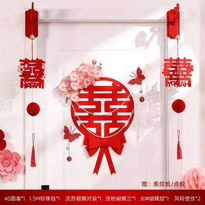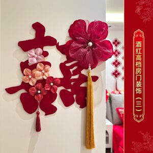 结婚布置用女方卧室房门喜字贴酒红喜字贴男方婚房布置喜字贴