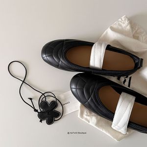 现货版~法式小香风软皮浅口玛丽珍鞋女魔术贴拼色平底芭蕾鞋舞鞋