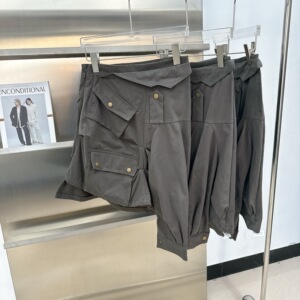 秋季新款复古水洗做旧半身裙工装牛仔裙口袋不规则拼接袖中裙女潮
