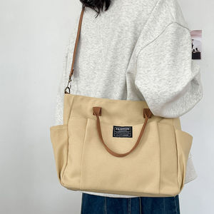 大容量多口袋托特帆布斜跨包通勤学生日系纯色文艺简约上课单肩包