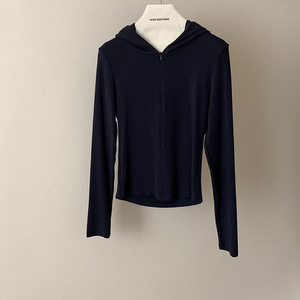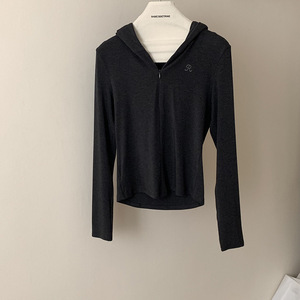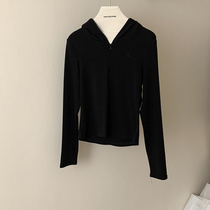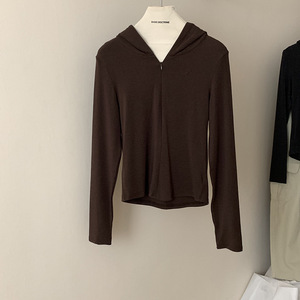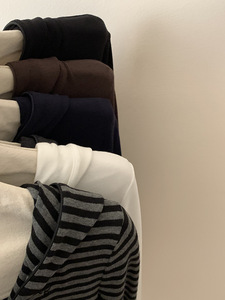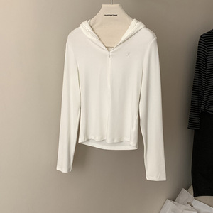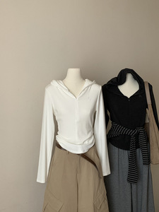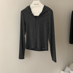 自在随性 半拉链连帽条纹长袖T恤女休闲 秋显瘦外穿打底帽衫8021