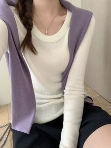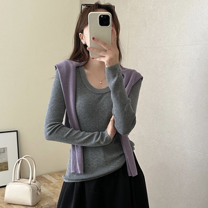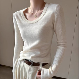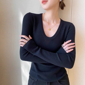 诗之韵新款韩版毛衣U领长袖安迪绒纯色修身显瘦休闲针织衫百搭