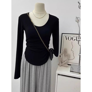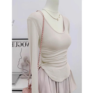 纯欲紧身U领德绒打底衫女秋冬2025新款长袖粉色茶艺chic内搭上衣