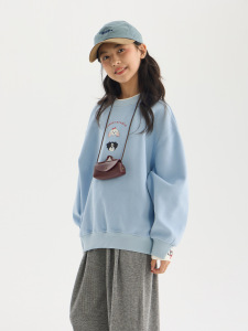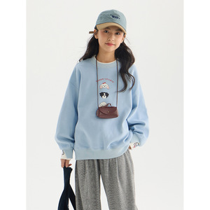 女童假两件小狗卫衣2025秋装新款儿童圆领套头上衣中大童宽松长袖