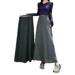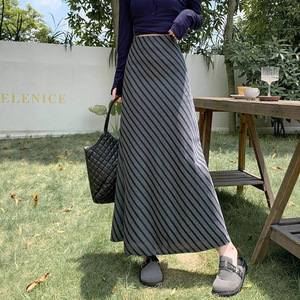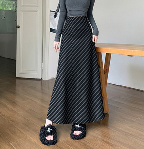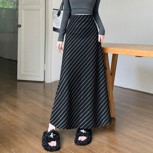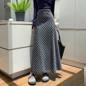 美式黑灰色爆款高腰半身裙女秋冬新款条纹宽松显瘦收腰a字长裙