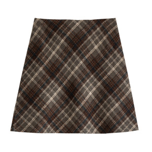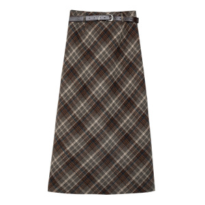 EGGKA美拉德气质高腰a字半身裙春秋新款设计感格子棕色复古长裙女