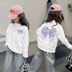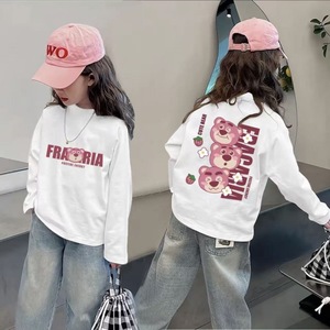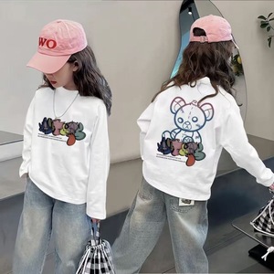 男女童纯棉圆领长袖2025新款春秋中大童休闲百搭卡通印花打底上衣