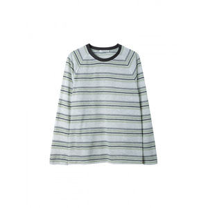 1313盐系绿条纹休闲长袖防晒衫罩衫薄款透气宽松复古T恤女早秋款