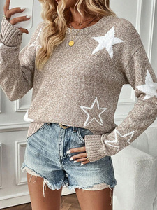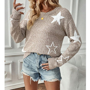 欧美秋季新款美式毛衣女亚马逊跨境外贸五角星图圆领长袖套头上衣