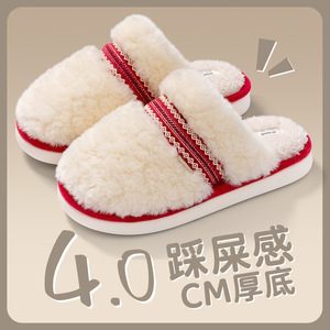 厚底增高4.0cm加绒棉拖鞋批发居家室内保暖防滑外穿时尚秋冬百搭
