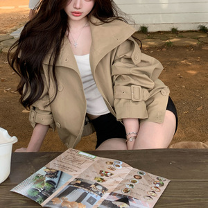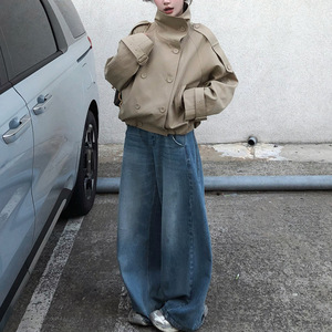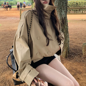【英区留学生】Ac*e25秋季新季英伦双排扣宽松立领短款风衣外套女