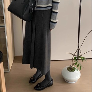 灰色羊毛针织百褶裙半身裙女秋冬新款学院风高腰宽松中长款字裙