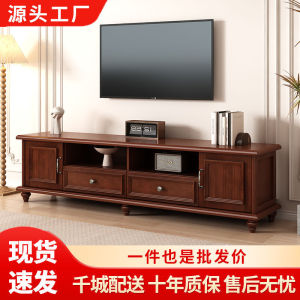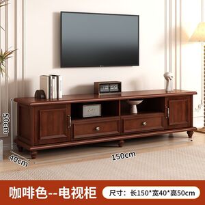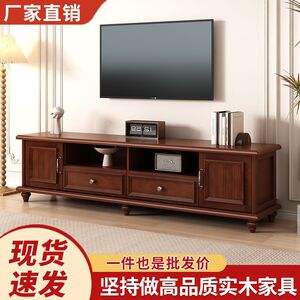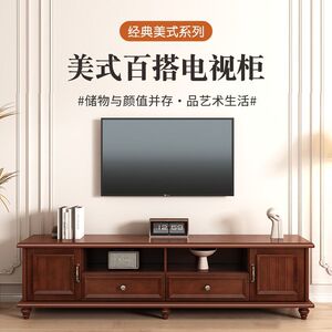 实木美式电视柜落地式茶几组合小户型家用地柜客厅复古电视机柜