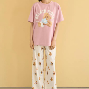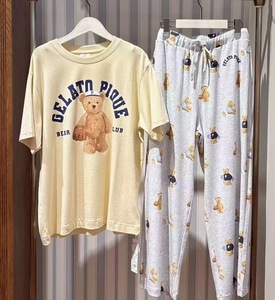 软绵绵冰淇淋新品棉柔软可爱小熊卡通印花圆领短袖女家居服套装