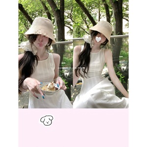 白水女 素素美女感 无袖背心连衣裙女韩系清冷感温柔修身裙子