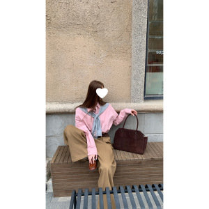 红人馆粉色衬衫女早秋女装2025新款法式小资上衣别致衬衣