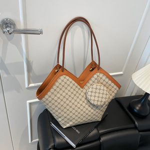 复古高颜值通勤托特包包女2025新款潮时尚印花单肩包大容量腋下包