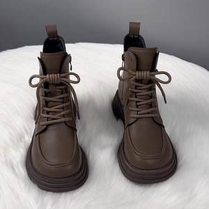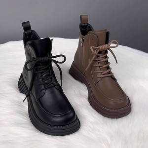 软皮加绒保暖马丁靴女棉靴2025秋冬新款厚底短靴平底百搭加厚棉鞋