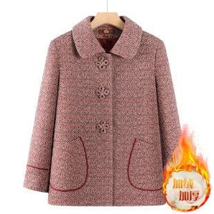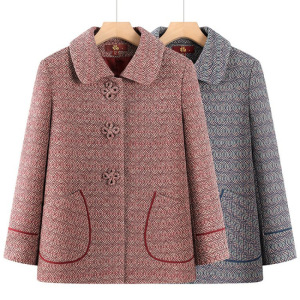 奶奶秋装毛呢外套中老年人洋气妈妈宽松上衣服老太太女士春秋大衣