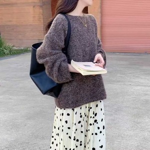 慵懒风高级感针织套头衫女秋冬新款韩系女装氛围感宽松软糯毛衣女