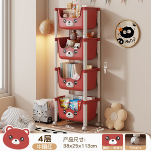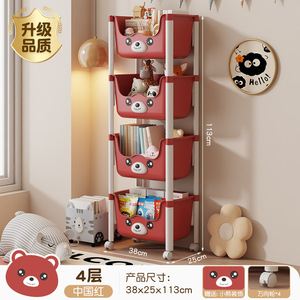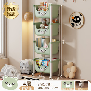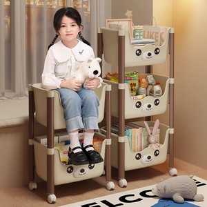 儿童书架玩具收纳架小推车零食多层绘本置物架家用可移动整理架子