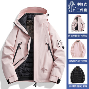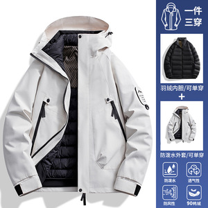 冲锋衣定制男三合一羽绒内胆冬季防水外套女户外登山滑雪服印logo