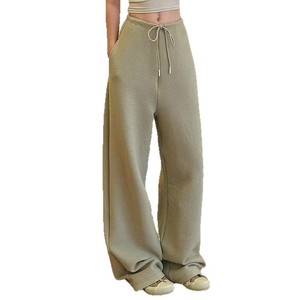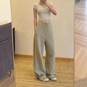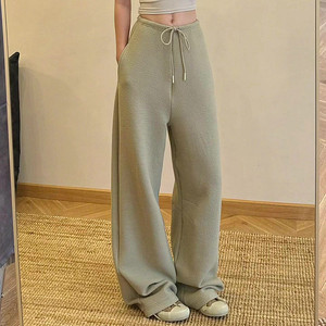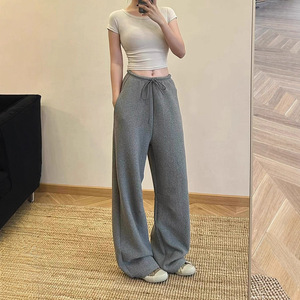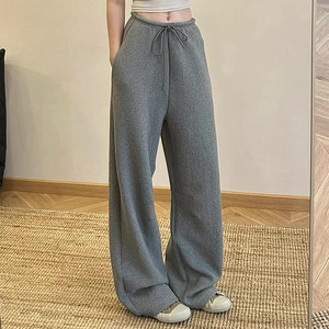 窄腰头弧形香蕉锥形裤慵懒风2025秋冬高腰直筒抽绳软糯加厚阔腿裤