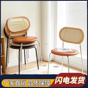 中古藤编椅子网红INS风靠背椅家用民宿小户型餐椅阳台椅