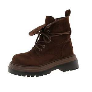 牛皮版~美拉德棕色机车大头英伦中筒短靴厚底增高小个子马丁靴女