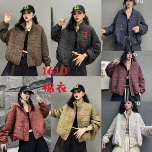 时尚米字格棉服女2025秋季新款休闲宽松立领小众短款外套棉衣