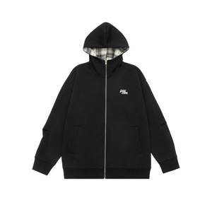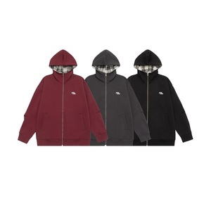 FLYCLAN潮流休闲宽松连帽开衫卫衣男拼接格子内里帽衫外套EK8990