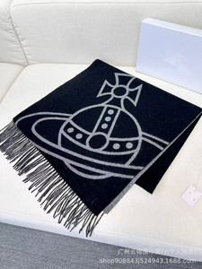 25新款VIVI大土星西太后羊毛围巾女秋冬刺绣流苏双面羊绒情侣披肩