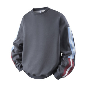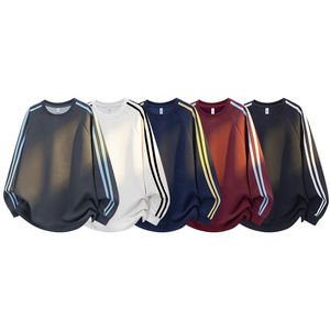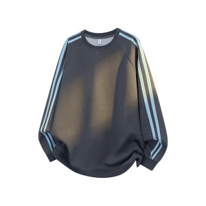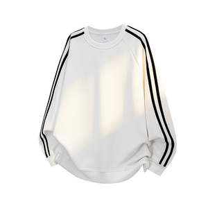 圆领撞色条纹卫衣男2025春秋季高街三条杠oversize休闲外套加大码