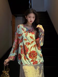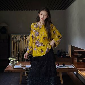 新中式国风高端梭织丝绒提花上衣女2025新款特超好看衬衫秋 N9005