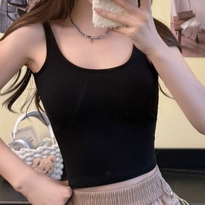 1080#秋冬新款磨毛U领保暖背心显瘦舒适固定带胸垫内穿打底衫上衣