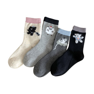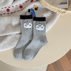 袜子女2025秋季新款植绒卡通动物中筒袜日系点子纱拼色堆堆袜无骨