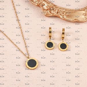 跨境热卖钛钢18k金黑贝罗马项链耳环套装数字符号女百搭饰品