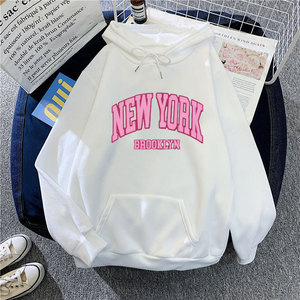 新款秋冬韩系连帽卫衣女大码宽松加绒大码外套ins潮印花长袖上衣
