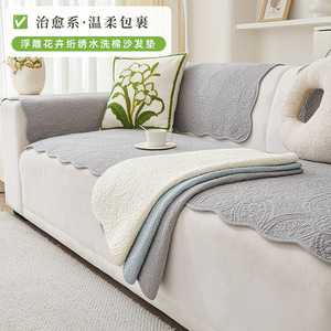奶油风纯棉沙发垫四季通用高档轻奢坐垫简约现代防滑坐垫沙发套罩