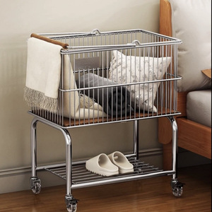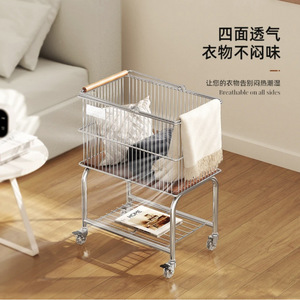 中古风收纳小推车置物架家用脏衣篮卫生间浴室衣服收纳筐洗衣篮子