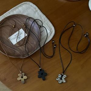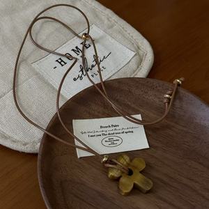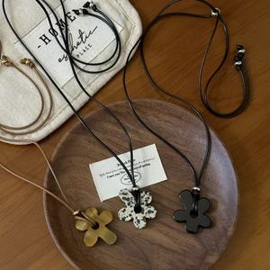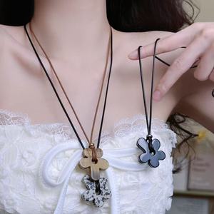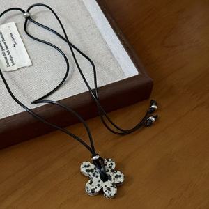 韩版天然虎眼斑点石花朵吊坠项链小众简约高级感长款可调节毛衣链