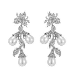 小众设计轻奢重工树叶耳钉高级感珍珠长款流苏耳环法式复古耳饰女