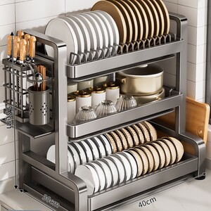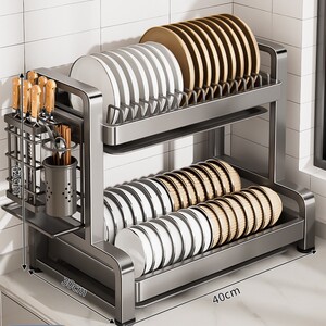 双层【升级特粗】星空灰40CM+刀筷架+砧板架[全配].