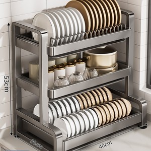 厨房沥水碗碟置物架不锈钢碗碟收纳架家用餐具多功能放碗盘筷子架