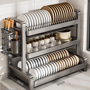 双层【升级特粗】星空灰50CM+刀筷架+砧板架[全配].