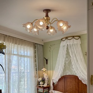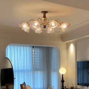 法式中古风吊灯主客厅灯黑胡桃木轻奢黄铜高级感新中式卧室餐厅灯