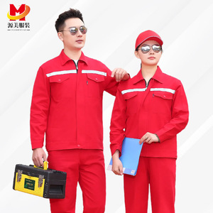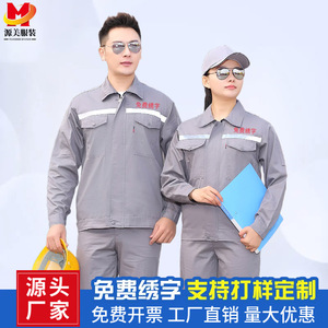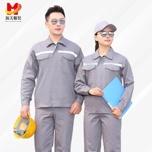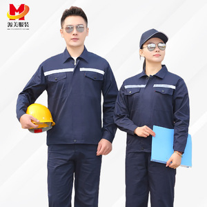 纯棉夏季长袖工作服工厂车间电焊工劳保服工地安装维修施工服批发