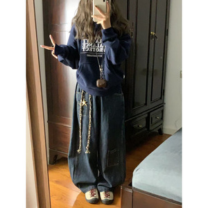 灰色短款连帽刺绣字母卫衣女2025新款春秋季薄款美式慵懒chic外套