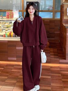 胖MM特大码300斤时尚百搭安哥拉红套装女秋季慵懒风运动服两件套2