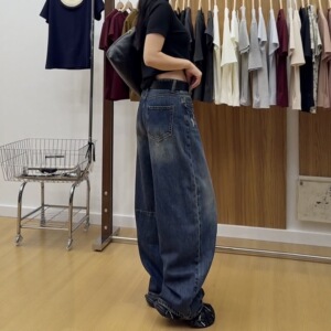 大码美式阔腿牛仔裤女秋季2025新款复古胖mm显瘦宽松直筒弯刀裤子